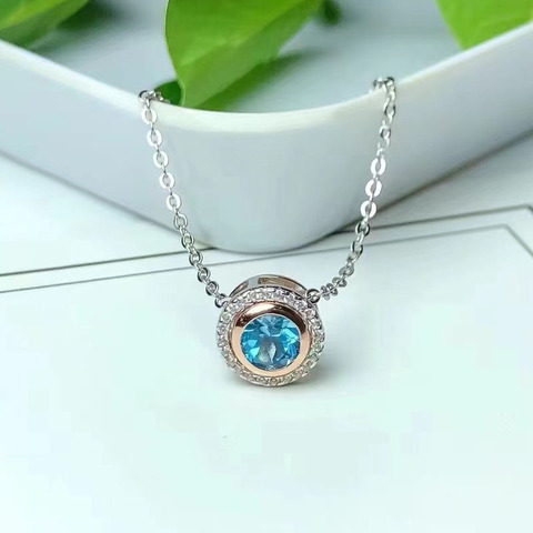 SGARIT Modeschmuck 925 Sterling Silber Schmuck Modeschmuck Natürlicher blauer Topas Rosé vergoldeter Edelsteins chmuck