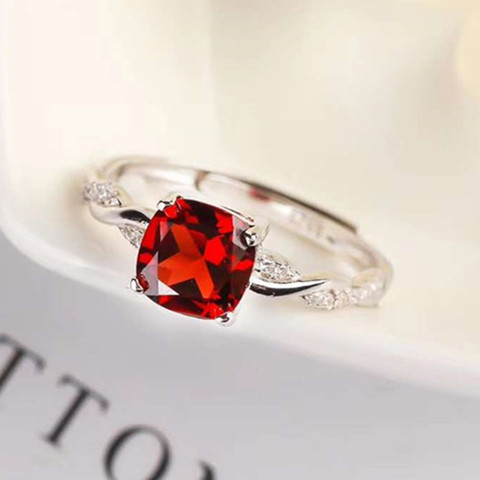Einzel Edelstein verstellbarer Ring Schmuck 925 Sterling Silber 18 Karat vergoldet 7mm natürlichen roten Granat Ring