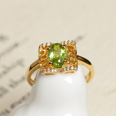 SGARIT neue Mode verstellbarer Ring 5x7mm Olivin Stein Verlobung sring Frauen Sterling Silber Kristalls chmuck