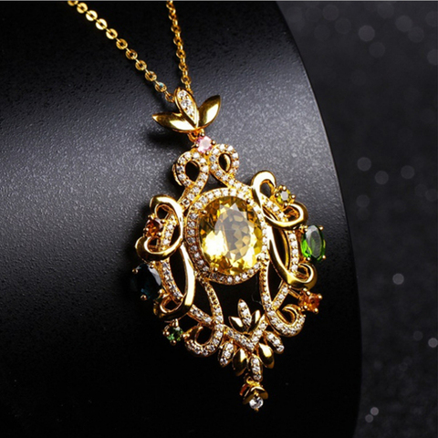 Großhandel 925 silber schmuck 18 k gold überzogene gelb citrin blau topas natürliche kristall anhänger halskette edlen schmuck
