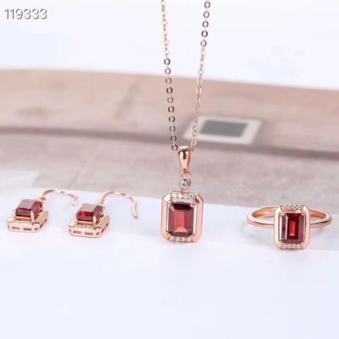 SGARIT Modeschmuck Natürliche Taube Blut Rot Granat Sterling Silber 925 Kristall Schmuck Set Frauen Hochzeits schmuck